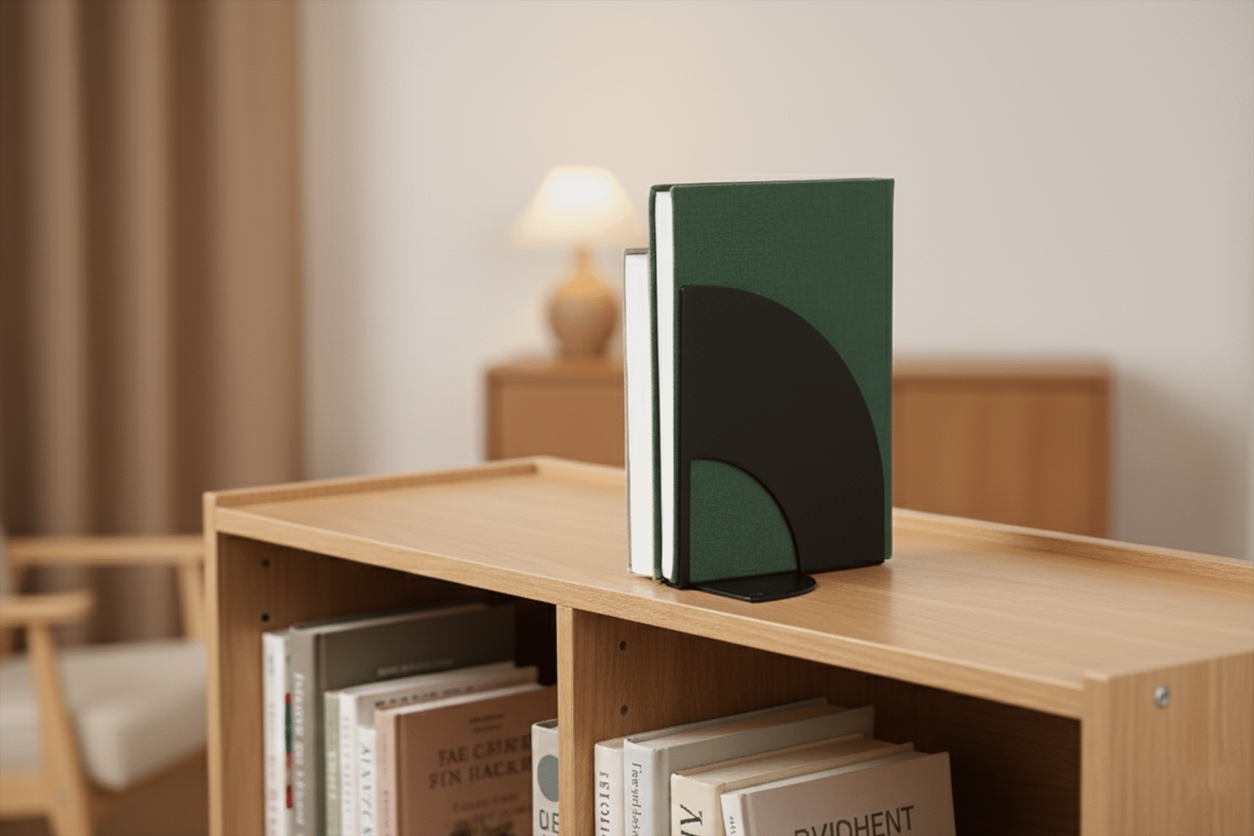 In Tiefschwarz wird sie zu einem ruhigen, minimalistischen Akzent, der die Umgebung strukturiert und dem Regal eine klare, geordnete Linie verleiht.