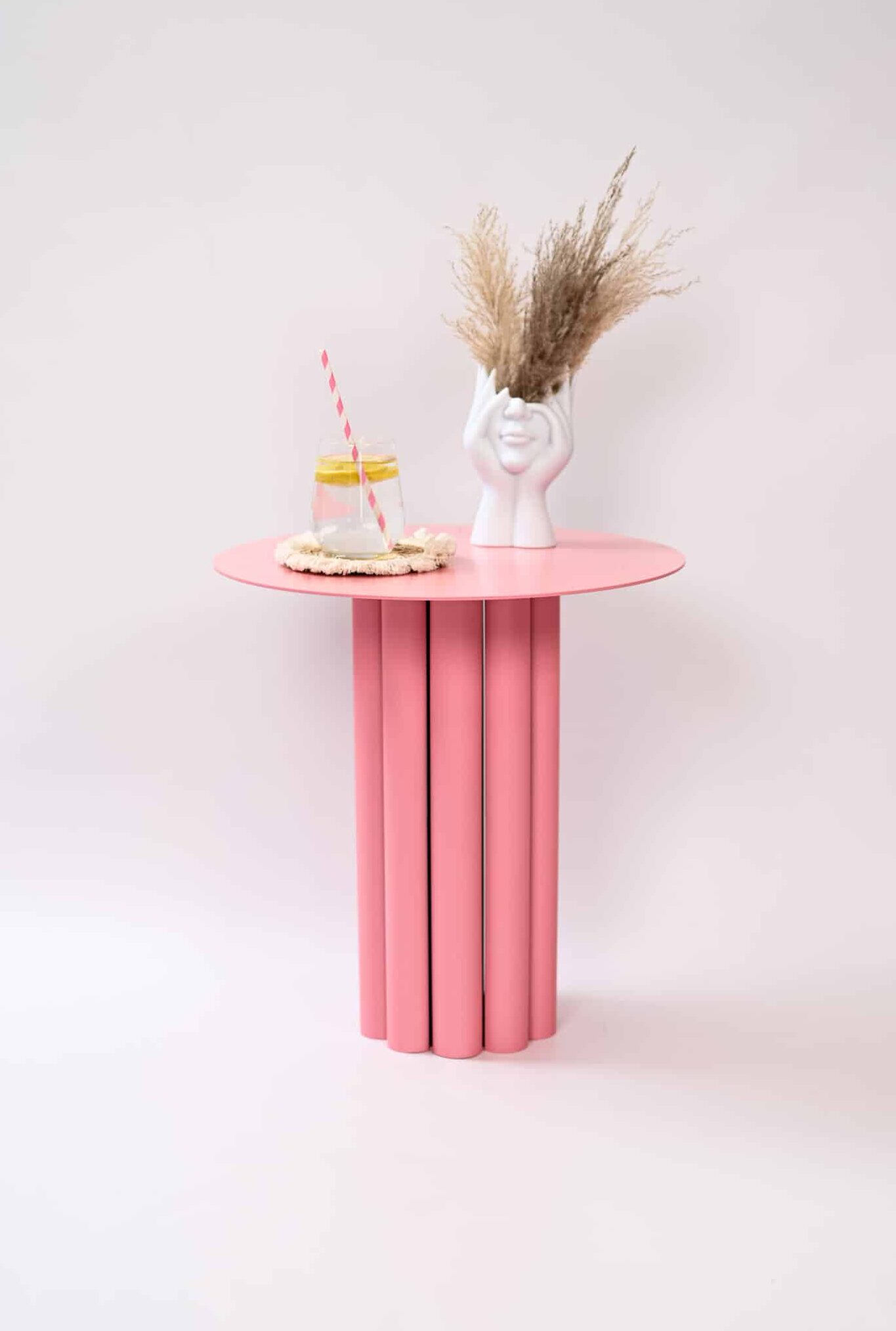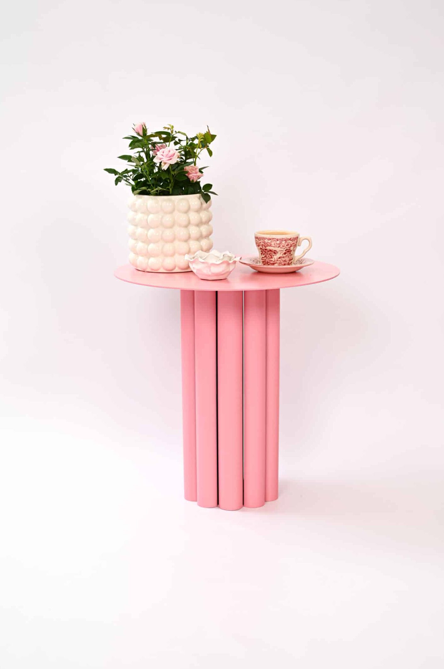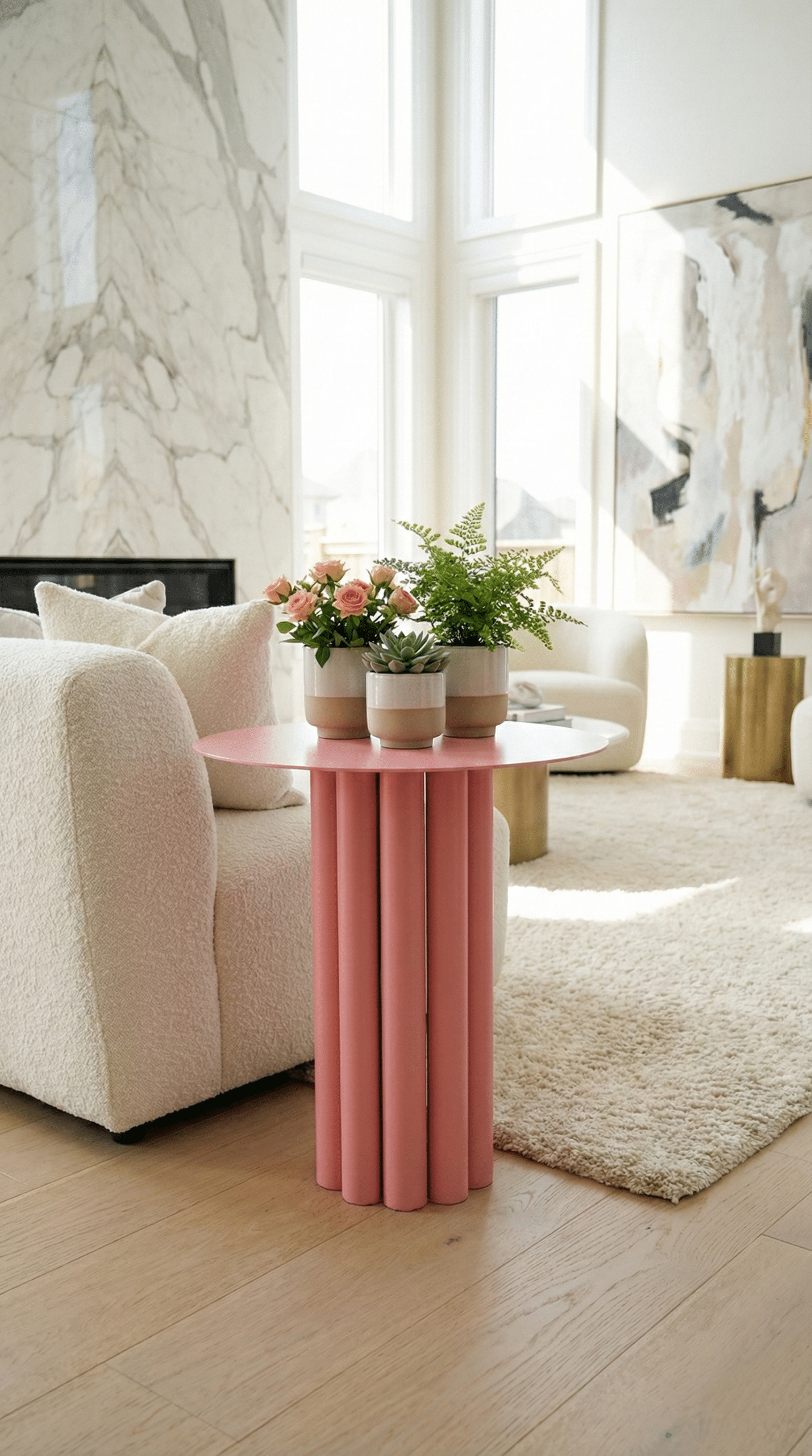 Sanfter Charme – Der Aurea Metall-Couchtisch in Light Pink.