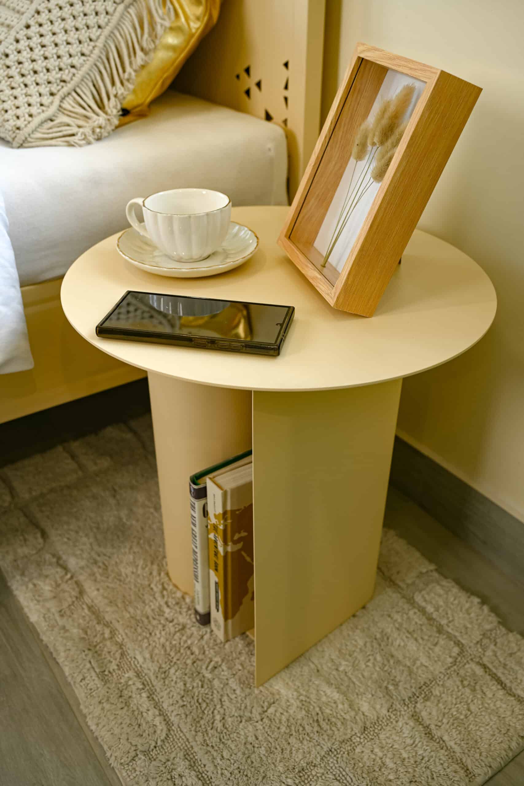 Der Pocket Metall-Couchtisch in Light Ivory ist ein wunderschönes, vielseitiges Möbelstück, das sich Ihrem Lebensstil anpasst. Ob als Couchtisch im Wohnzimmer oder als Nachttisch im Schlafzimmer – seine raffinierte Farbe und durchdachte Form verleihen jedem Raum eine Atmosphäre von Leichtigkeit und Ruhe.