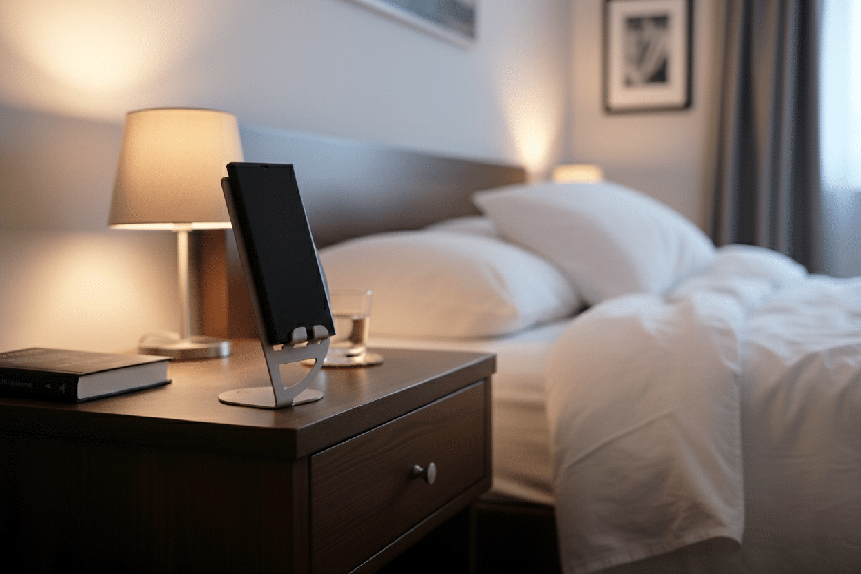 Der Ständer besteht vollständig aus Metall, wodurch er stabil und widerstandsfähig gegenüber täglicher Nutzung ist. Er verbiegt sich nicht und kippt nicht um, selbst wenn das Telefon mit einer Hand bedient wird.