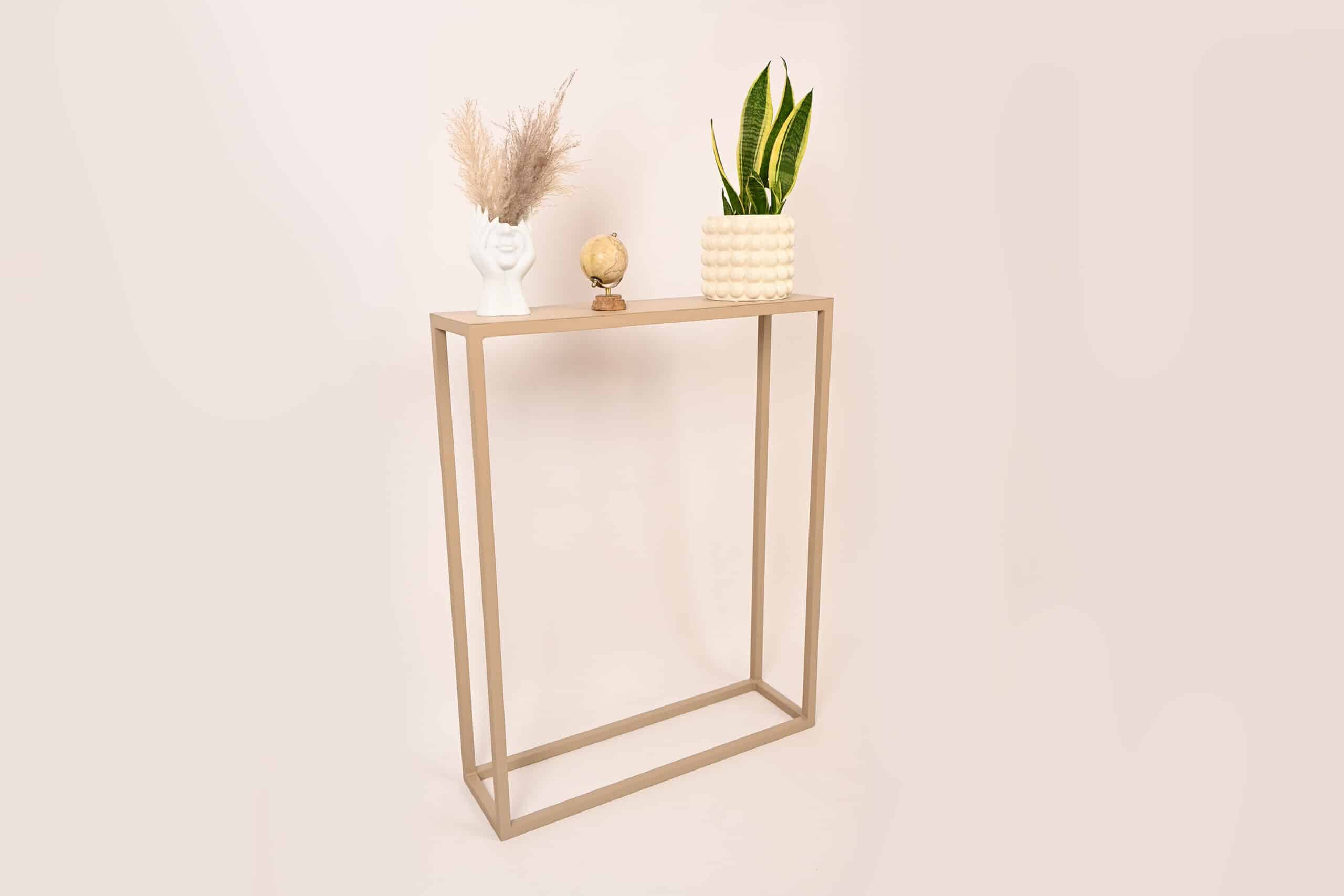 Der Linea Steel Konsolentisch in Grau-Beige bringt Ruhe und Vielseitigkeit in jeden Raum. Seine schlichte, aber elegante Form passt perfekt in den Eingangsbereich als Ablage für Schlüssel, ins Wohnzimmer als Basis für eine Lampe oder ins Schlafzimmer als zusätzliche Ablagefläche.