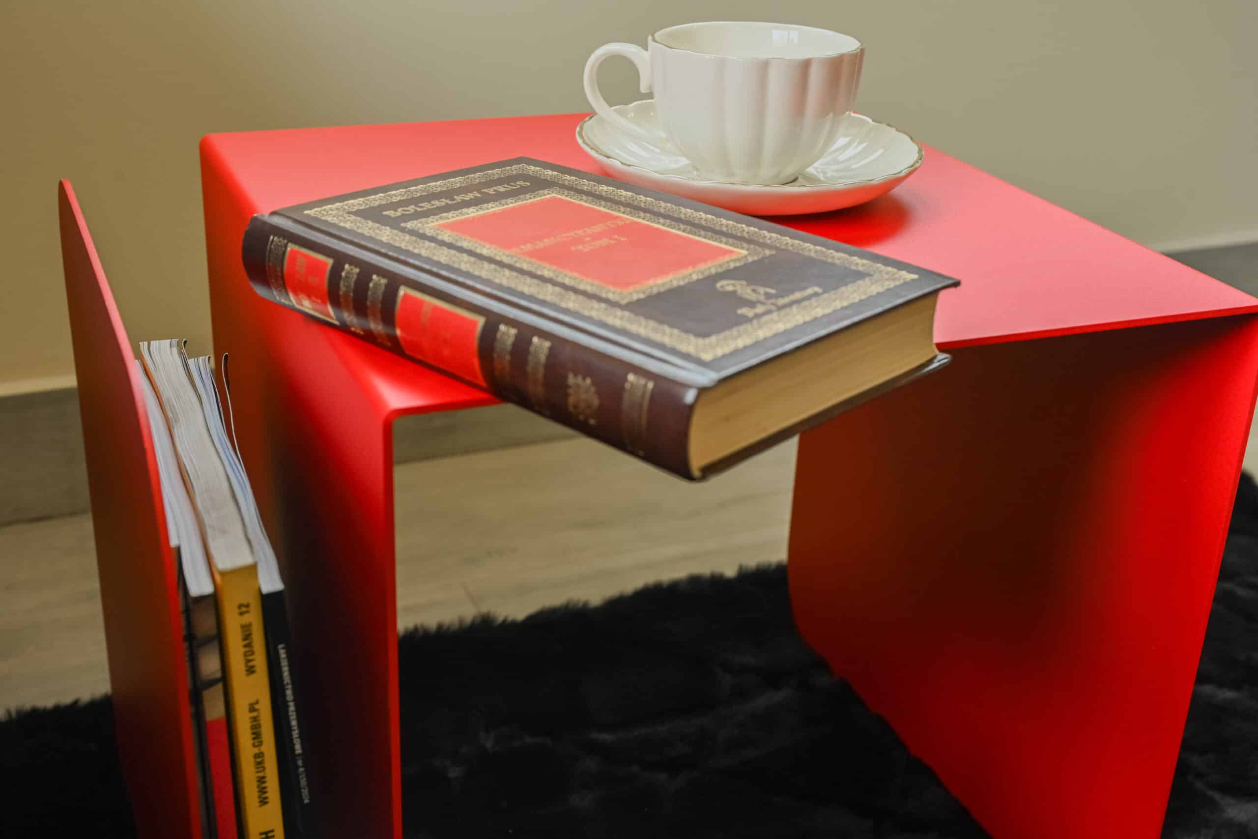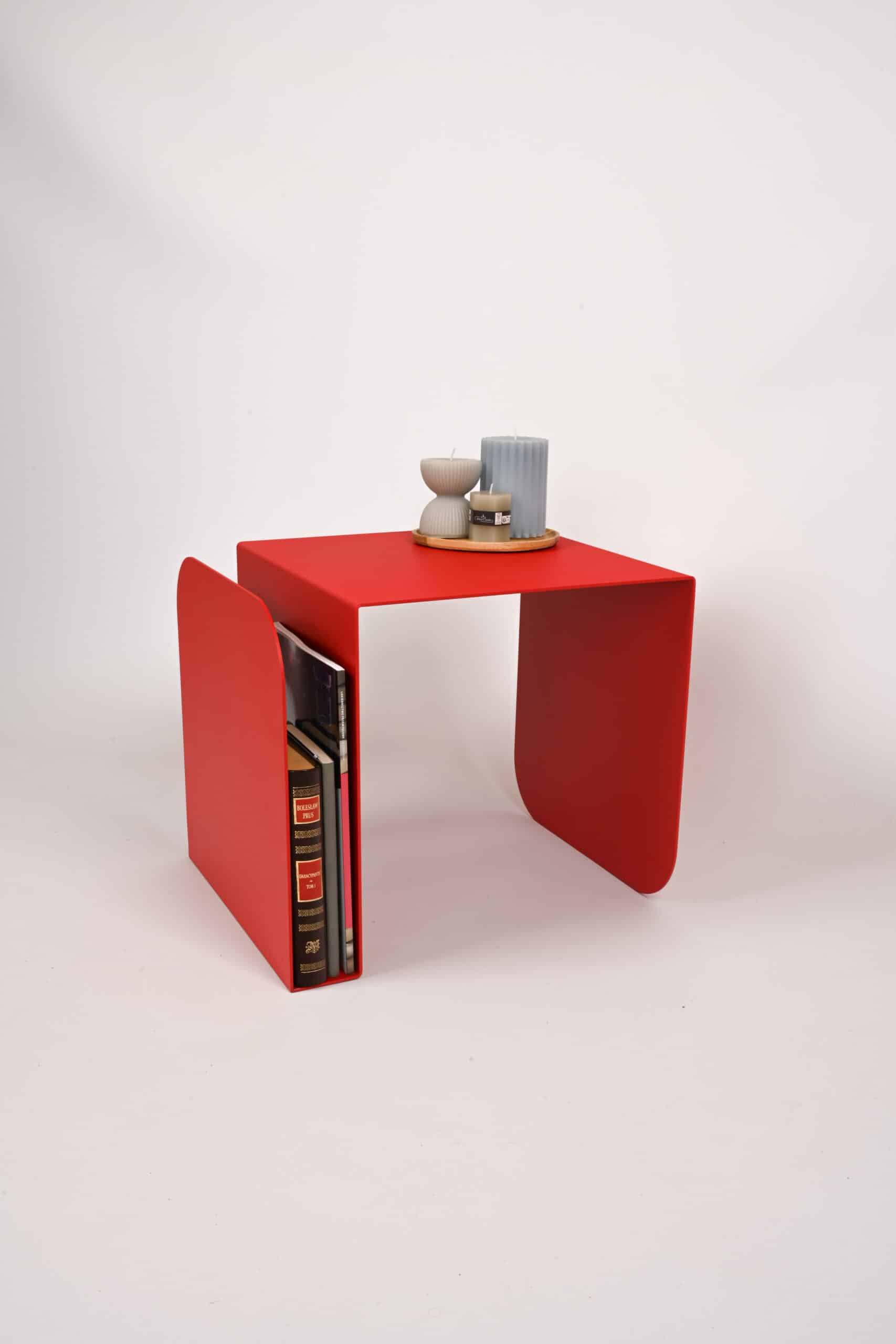 Arcus ist mehr als nur ein Platz für eine Nachttischlampe – er verfügt über ein praktisches integriertes Bücherregal, sodass Ihre Lieblingsbücher immer griffbereit sind und Ihr Raum organisiert bleibt. Das kräftige Rot ist perfekt für alle, die gerne mit Farben experimentieren und eine dynamische, inspirierende Atmosphäre im Schlafzimmer schaffen möchten.