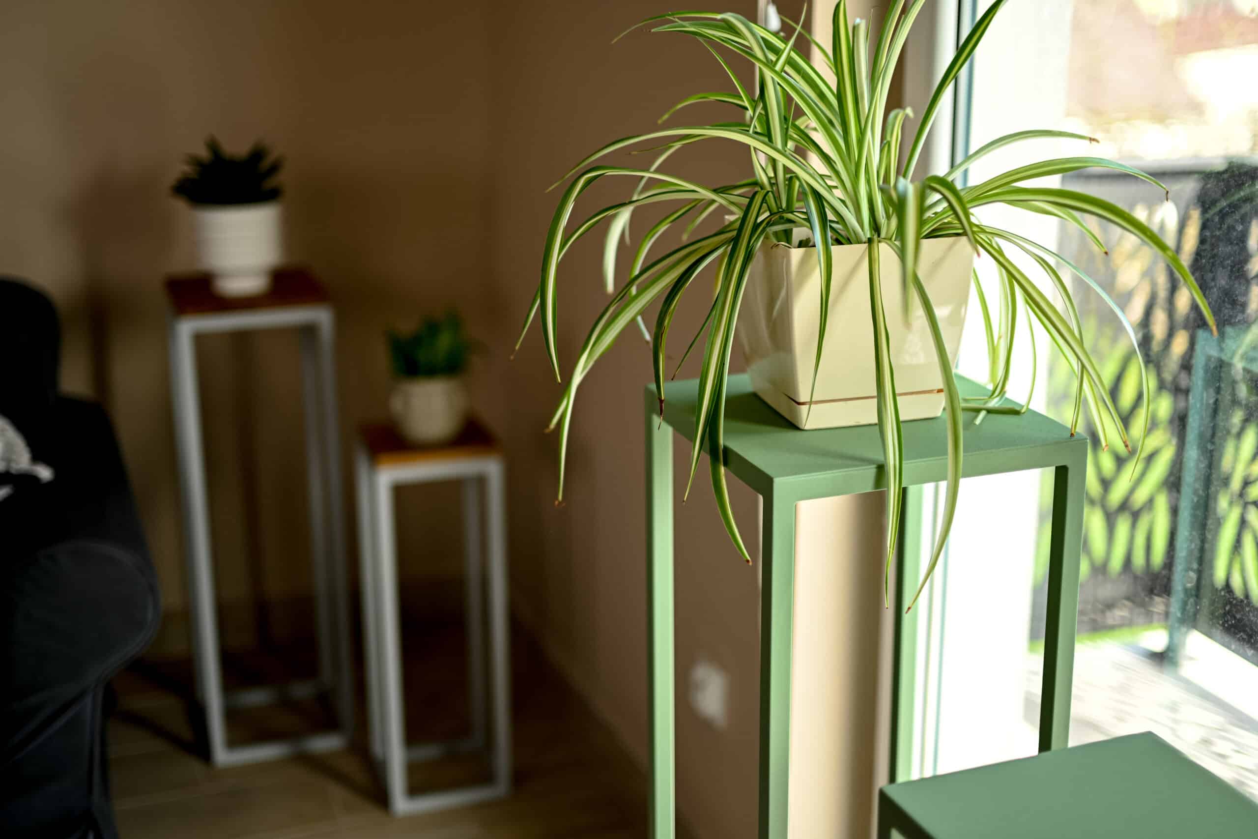 Entdecken Sie Ruhe und Frische mit dem Tetris Steel Metall-Pflanzenständer in Pale Green.