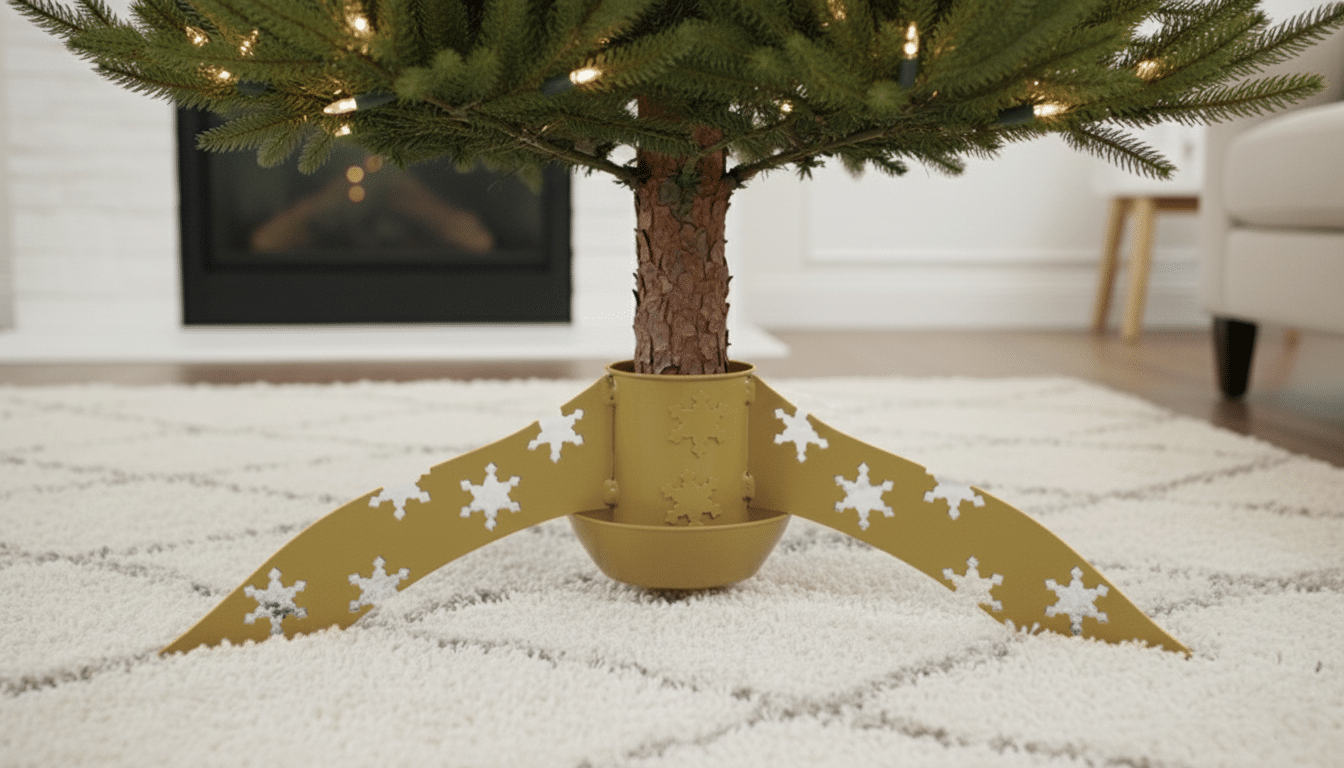 Eine stabile Metallbasis sorgt dafür, dass der Weihnachtsbaum sicher und ausgeglichen steht, während die durchdachte Konstruktion eine schnelle Montage ohne zusätzliches Werkzeug ermöglicht. Ein Stück, das für viele Jahre konzipiert wurde – langlebig, solide und zeitlos. Die Abmessungen des Ständers wurden so gewählt, dass er zu den meisten Wohnraum-Weihnachtsbäumen passt – von kleineren Fichten bis hin zu mittelgroßen Tannen. Dank der universellen Befestigungshülse und zuverlässigen Schrauben verläuft die Montage mühelos und präzise.